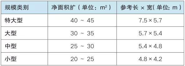 ▲国内洁净手术室规范中提及四类手术室规模的面积尺寸参照表(摘自《洁净手术室设计规范》)