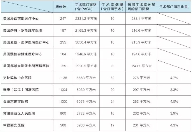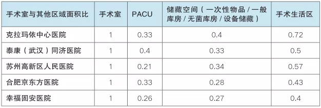 手术生活区、麻醉后护理单位 PACU、手术室、无菌物品(含设备)存放空间对比