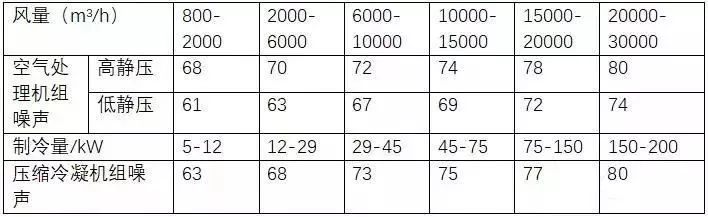 设备层空气处理机组噪声测量值应不超过下表的规定。