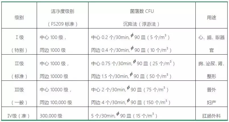 五、层流净化手术室的级别划分