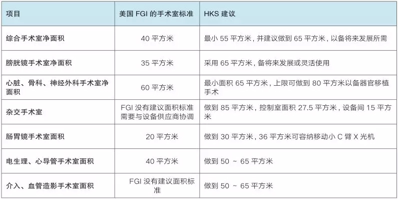 ▲结合美国 FGI的手术室标准与 HKS的设计经验,HKS提出的手术室建议标准面积
